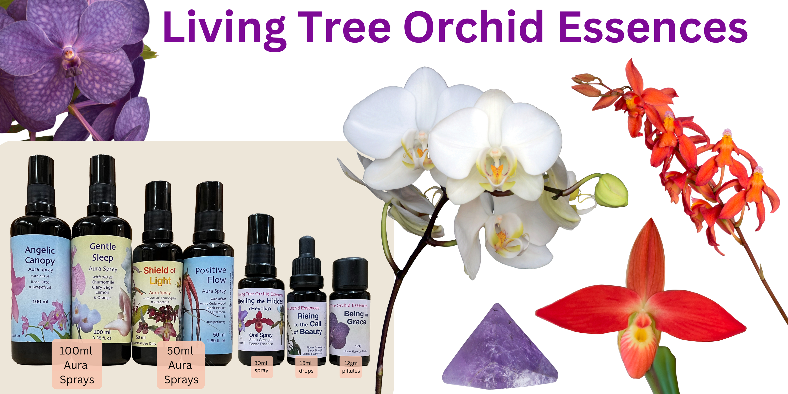 Our range of 183 Orchid essences & Aura Sprays.